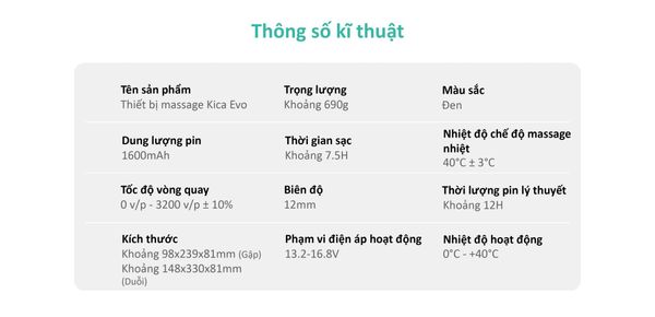 Thông tin Máy massage cầm tay gấp gọn KICA - EVO: